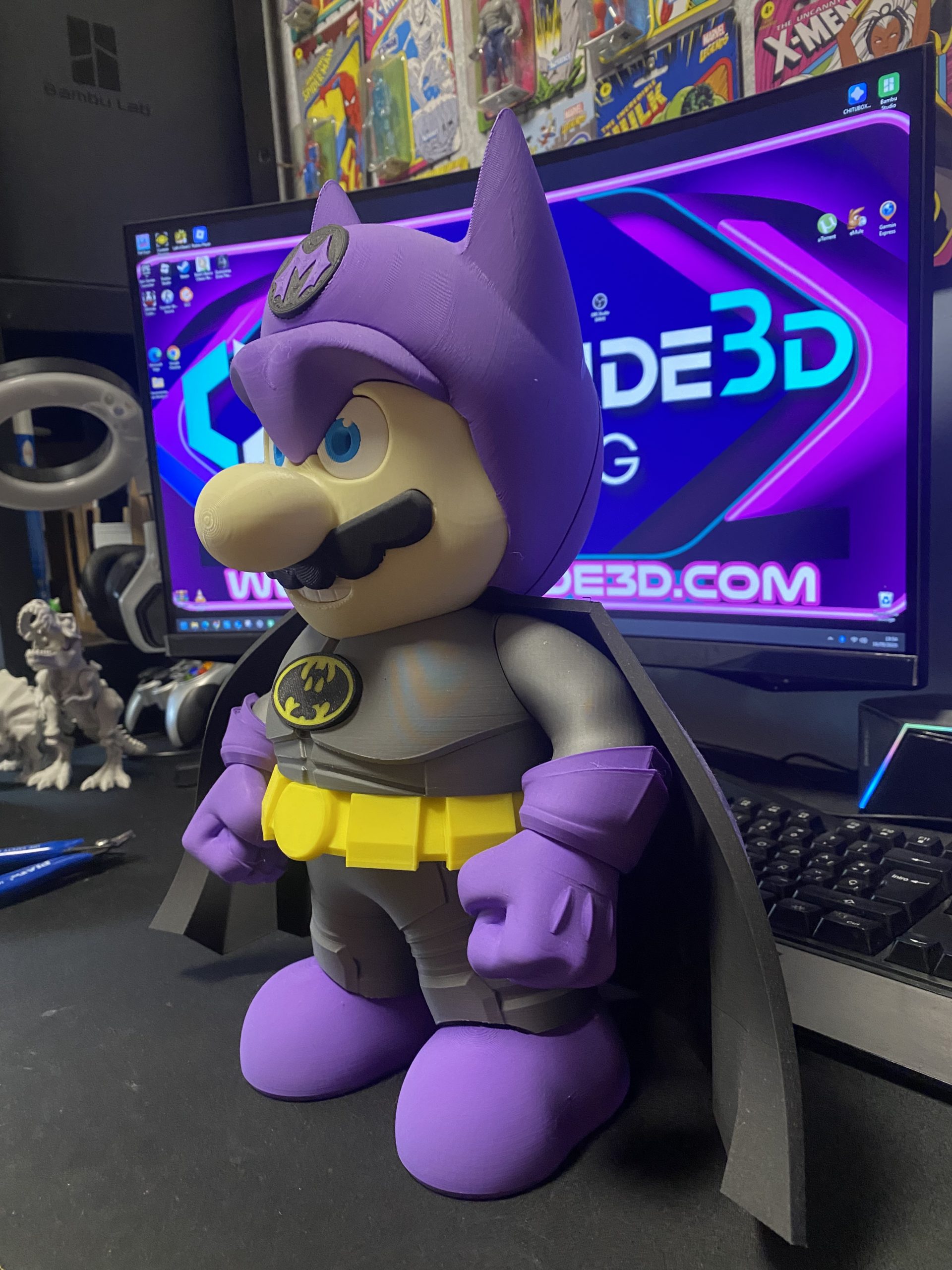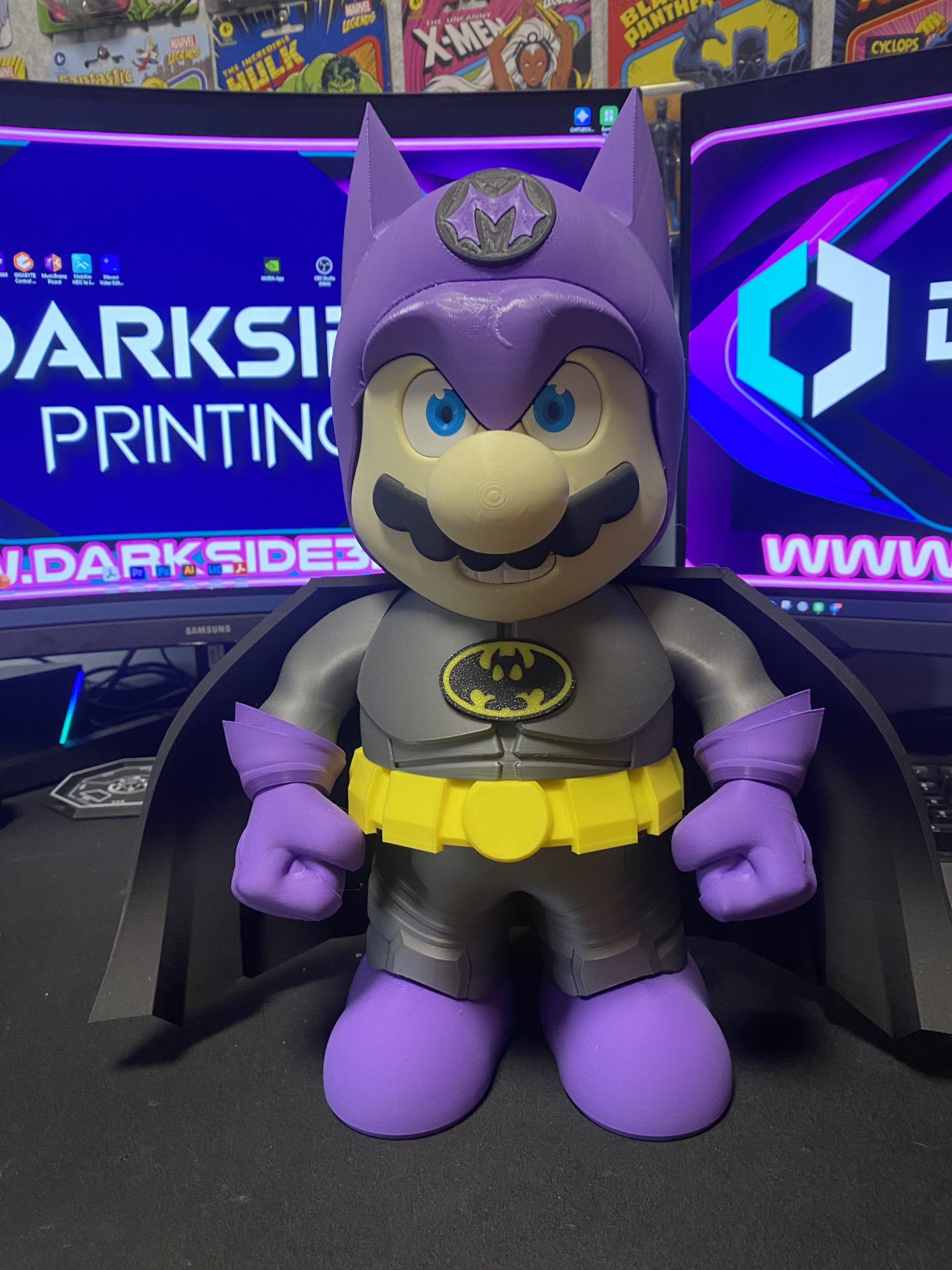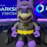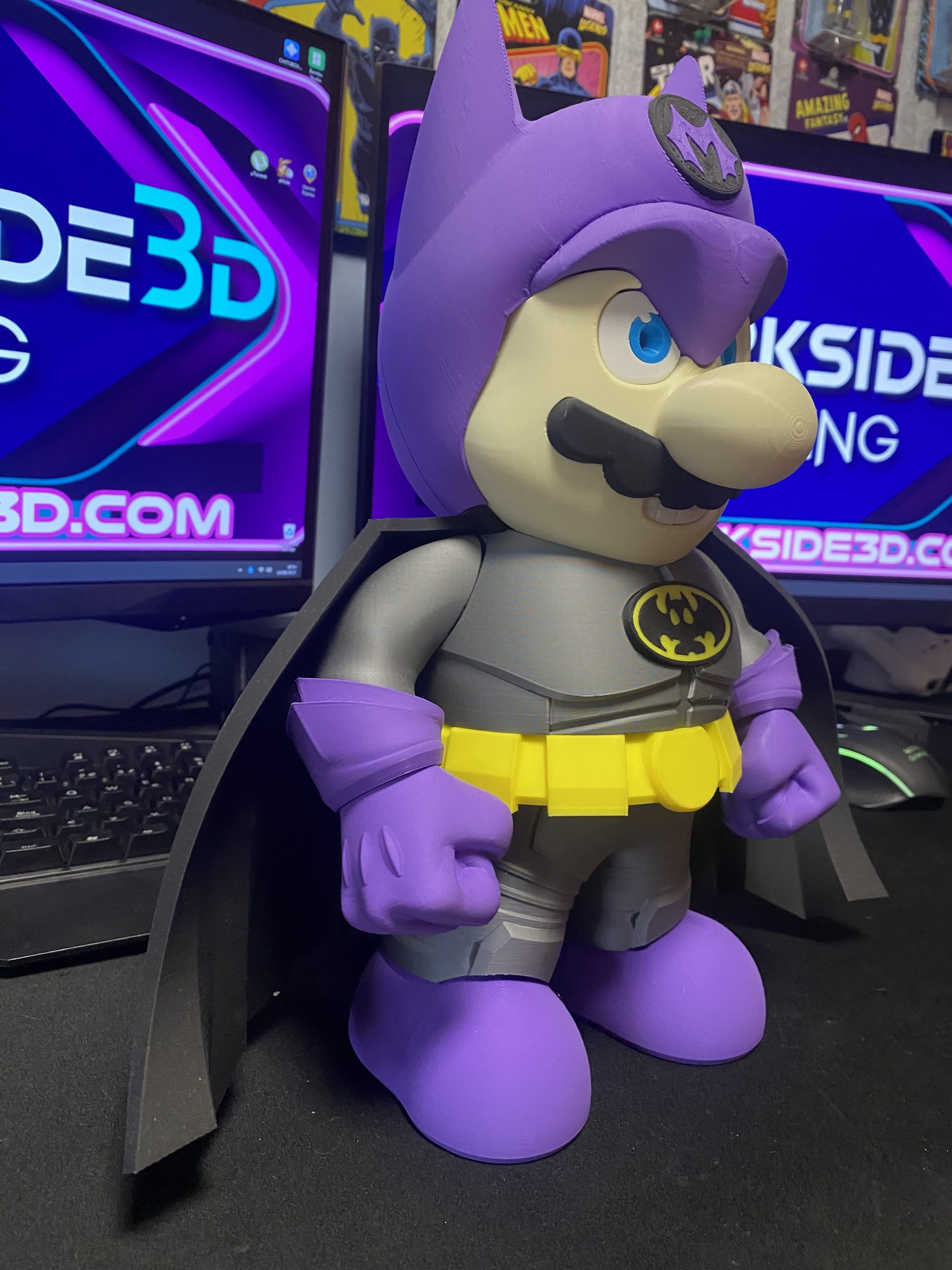 Enorme figura de 34 cms de alto del iconico personaje de Mario esta vez enfundandose el traje de Batman.