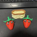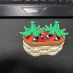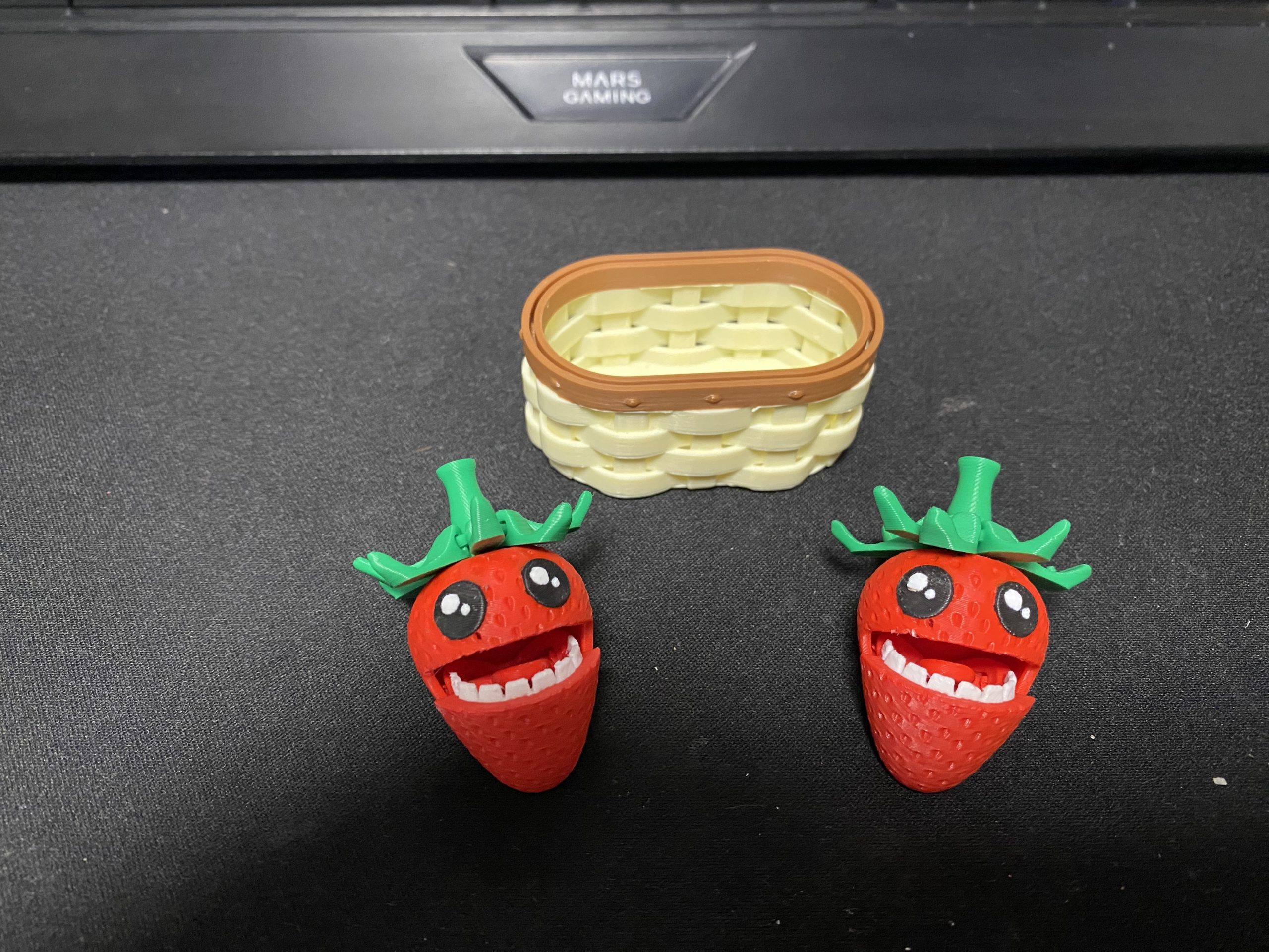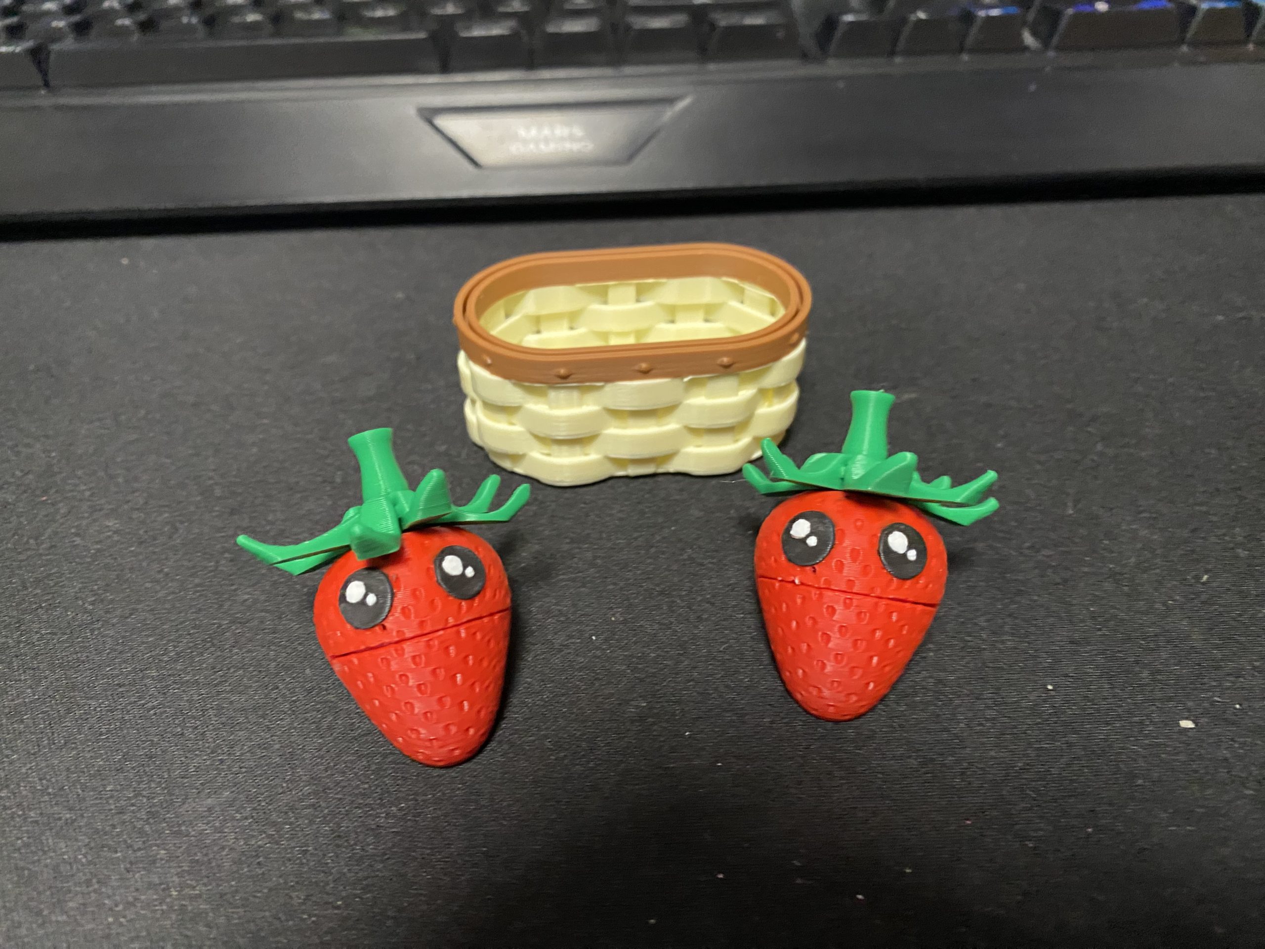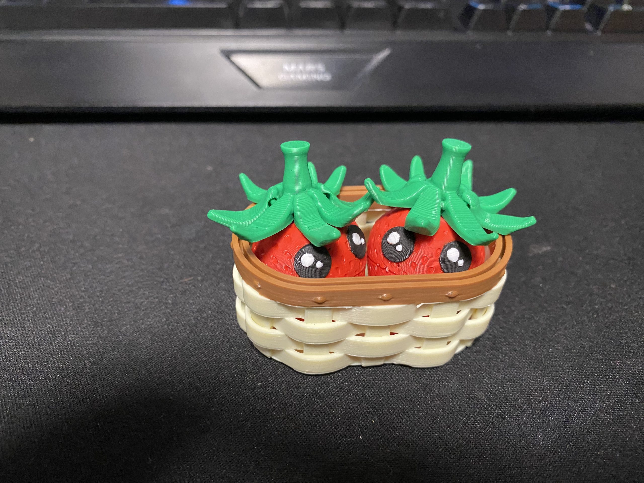 Cesta con dos fresas articulables realizadas en 3D. Ideal para regalos y adorno