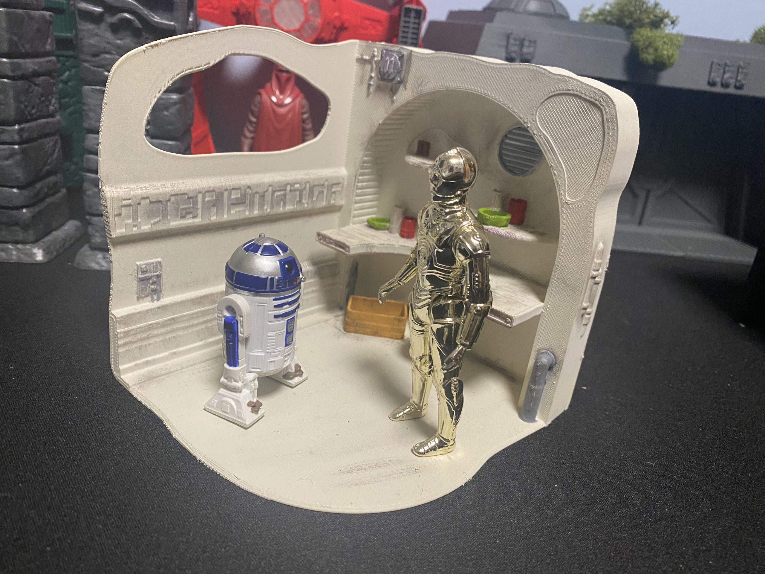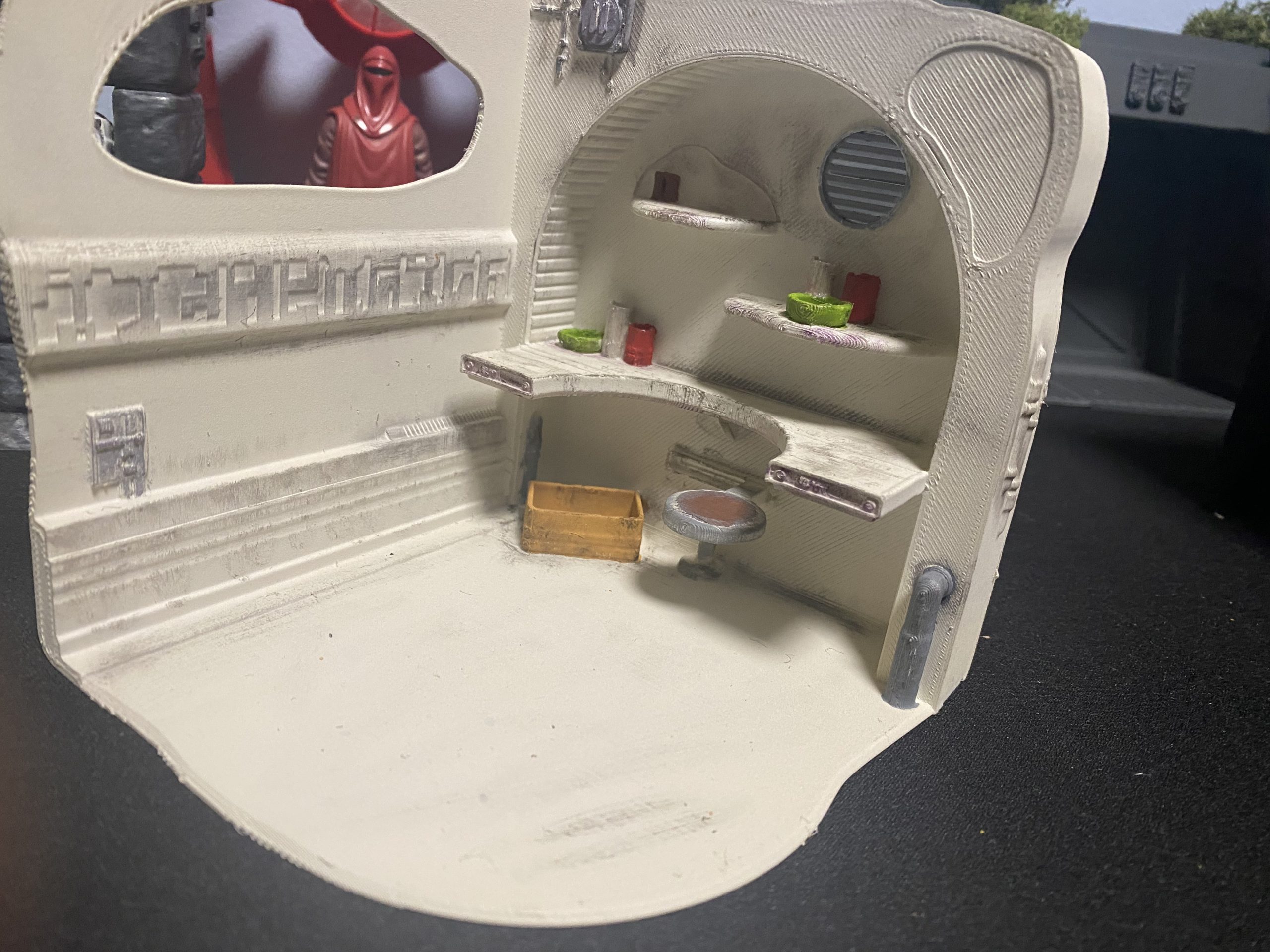 Interior de la casa del desierto. Los complementos son fijos.