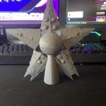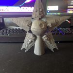 Esta es una decoración navideña única y perfecta para cualquier fan de Star Wars o de la impresión 3D. Se trata de una estrella para la punta del árbol de Navidad, pero no es cualquier estrella: está formada por varias naves espaciales tipo Destructor Estelar y en el centro lleva una mini Estrella de la Muerte. Todo está impreso en 3D con un acabado gris que le da un toque metálico y futurista, como si viniera directamente del Imperio Galáctico.