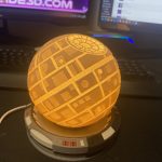 Lampara realizada en 3D que representa la estrella de la muerte. Mide 15 cms de alto y 13 de ancho.