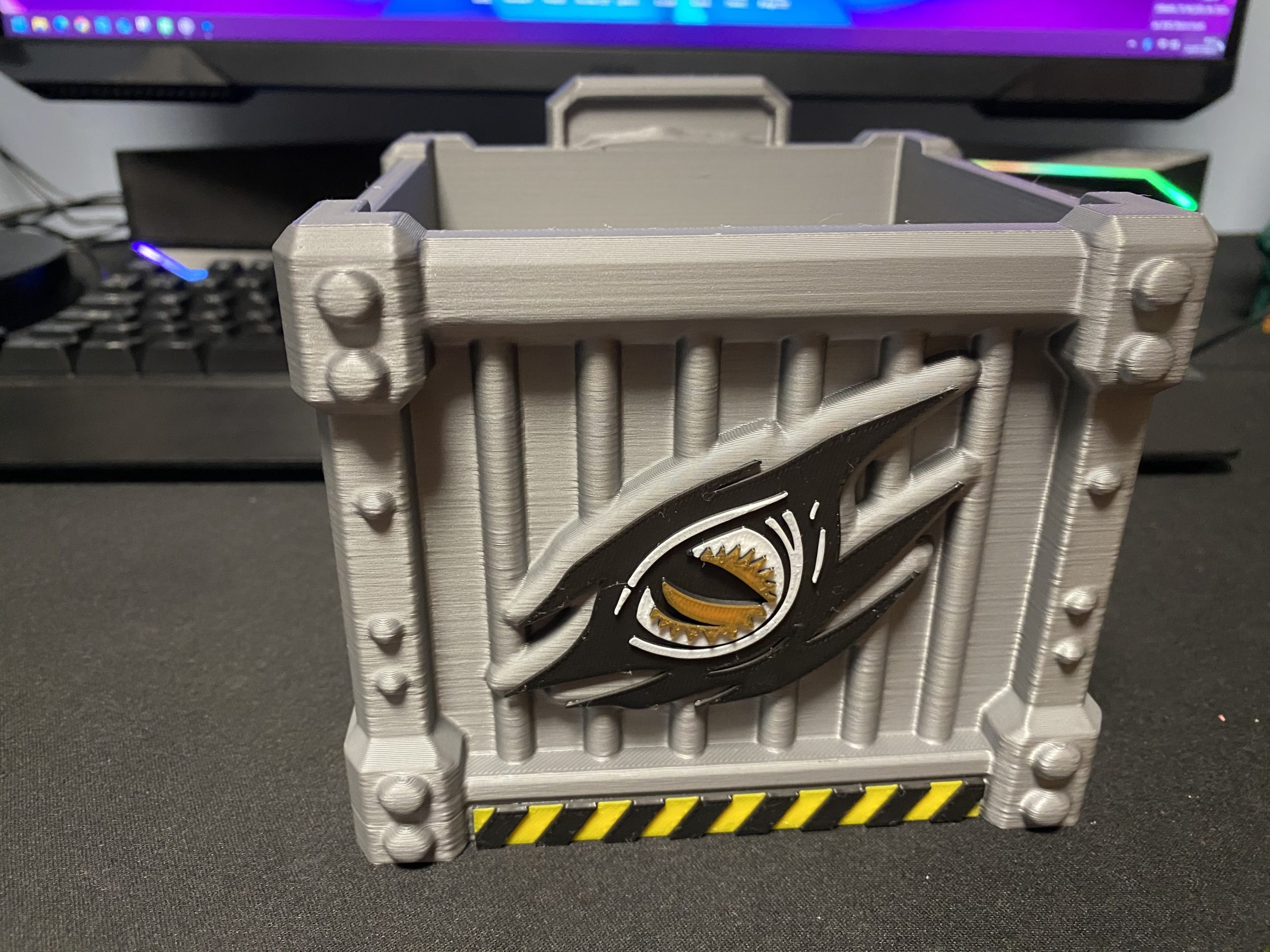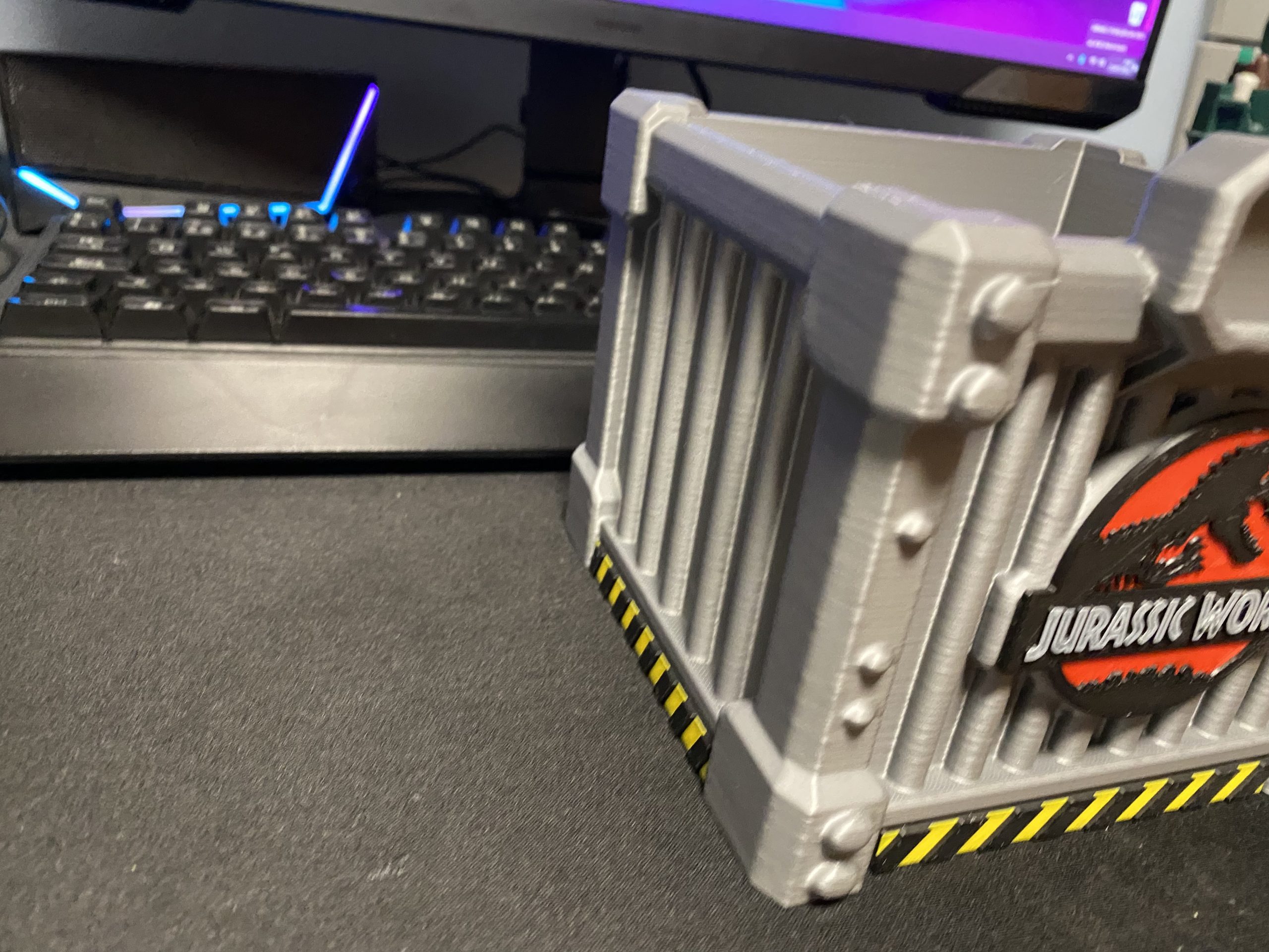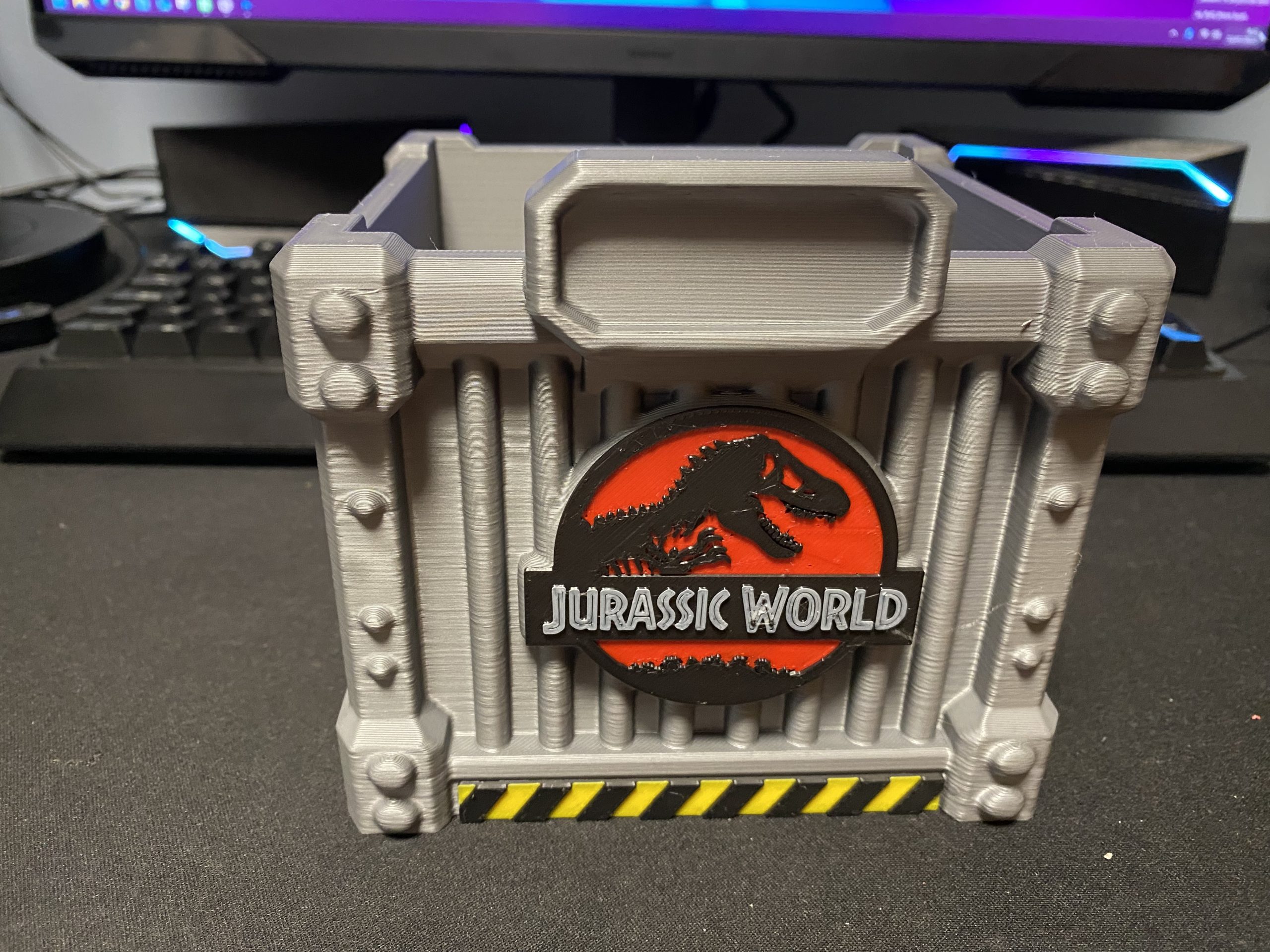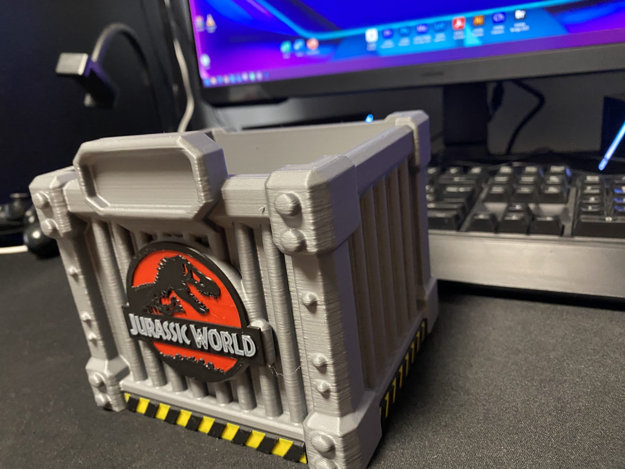 Estupendo organizador de escritorio, impreso en 3D con diseño de Jurassic World. Es ideal para organizar tu espacio de trabajo.